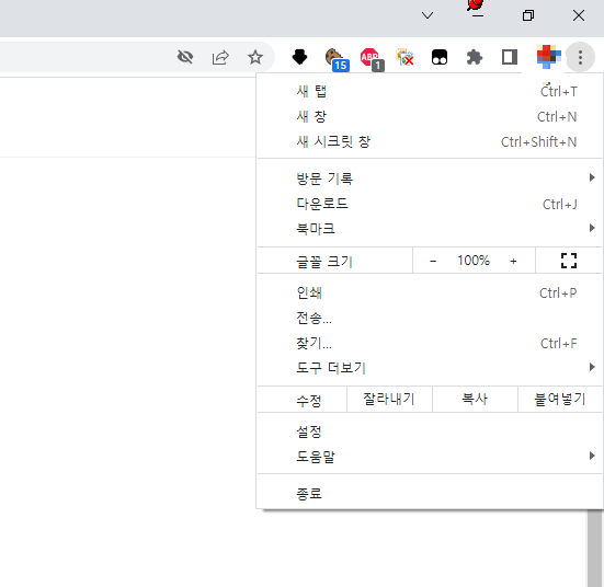 흔히 쓰는 브라우저 두개가 있죠. 하나는 크롬이고 하나는 엣지브라우저죠. 먼저 크롬 브라우저에서 바탕화면 즐겨찾기 추가하는 방법입니다.