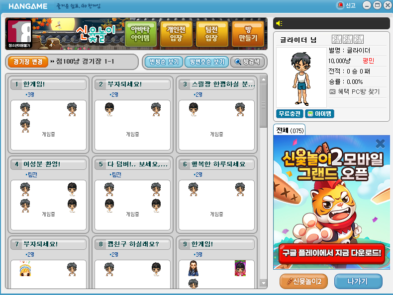 이제 아무 방이나 들어가서 게임을 즐기시면 됩니다.