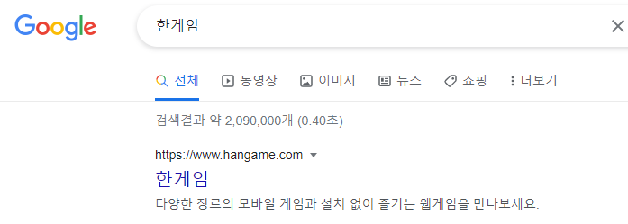 한게임은 구글 검색을 통해 들어 갈 수 있습니다.