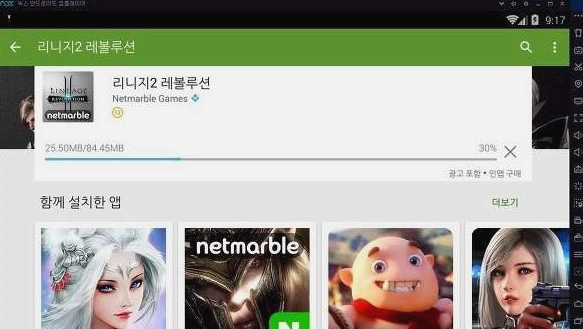 여기까지 잘 따라하셨다면 구글플레이어를 통해 다운로드 받을 수가 있습니다. 저는 제일 좋아하는 게임인 리니지2 레볼루션을 다운로드 받아봤습니다. 여러분들은 여러분이 하고 싶은 게임들 다운로드 받아서 하시면 됩니다. 여기까지 녹스플레이어를 가지고 컴퓨터로 스마트폰 하는 방법 알아봤습니다.