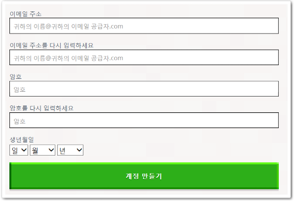 그리고 계정을 만들라는 창이 뜰텐데요. 이메일 주소와 암호 그리고 생년월일을 입력하시고,