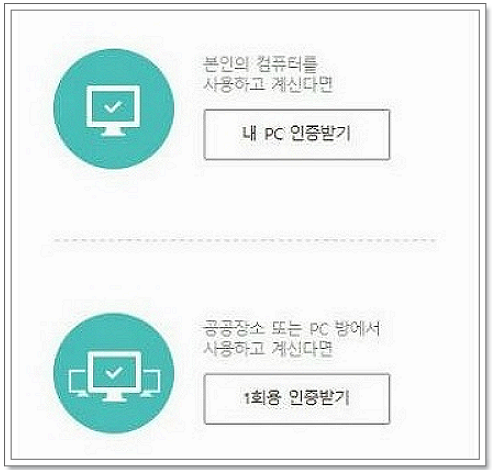 내 PC와 공공장소 또는 PC방 사용자를 위한 1회용 인증받기 서비스가 제공되고 있습니다. 이 중 자신의 환경에 맞는것을 선택하여 클릭해주세요. 그런 다음 자신의 스마트폰 번호를 입력해 주면 됩니다. 그럼 입력한 스마트 번호로 인증번호가 올건데요. 인증번호는 스마트폰에서 카카오톡 창을 키시고, 더보기 탭을 누른 다음 설정 탭을 눌러주세요.