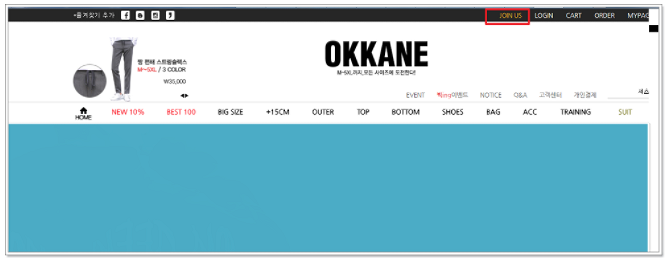 오까네에 접속하셨으면 상단에 JOIN US라고 주황색으로 써진 글자가 보일겁니다. 클릭하세요. 회원가입 창입니다.
