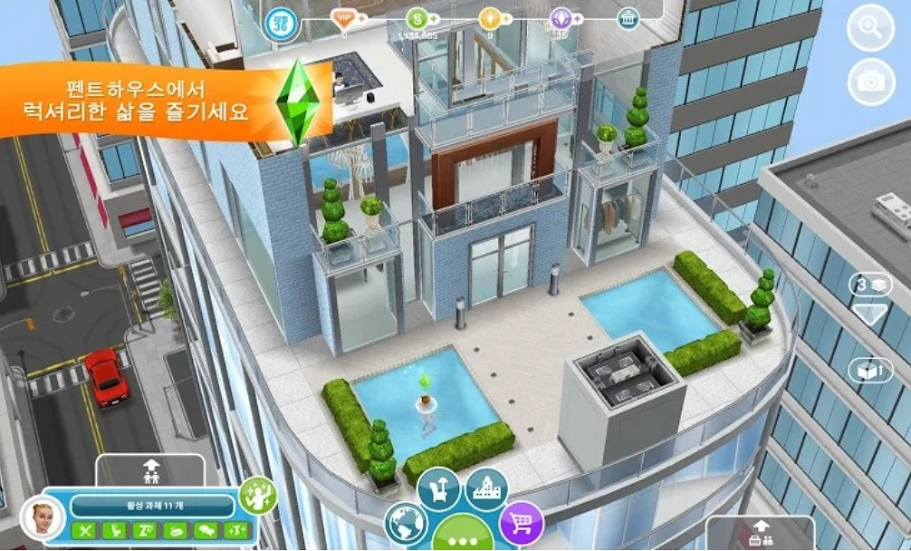심즈 프리플레이는 세계적 인기를 구가한 심즈 3를 폰에 이식한 게임인데요. 버그판이란건 그러한 기존의 심즈 프리플레이에서는 사용하지 못한 돈무한 기능을 사용 할 수 있습니다.