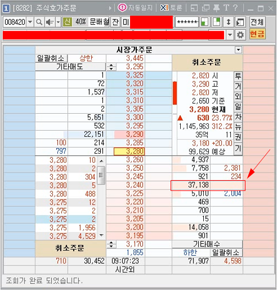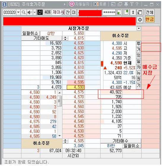 제가 매매한 종목들이 고점이라 오늘 캡쳐한게 별로 없어서 다음에 기회되면 정석적인 패턴에 돌파호가창을 올려드리도록 하겠습니다.