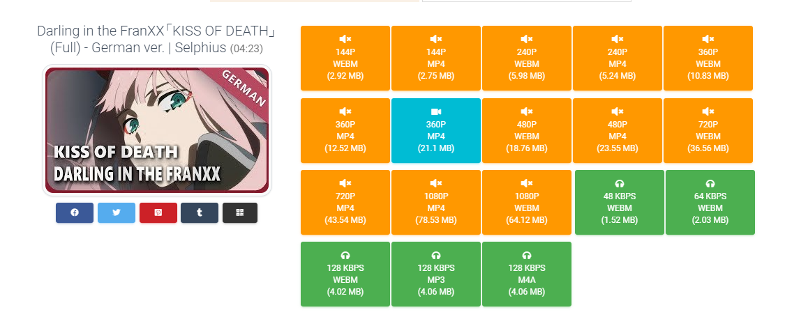 동영상 형식부터 단순 음성 형식 등모든 포맷들이 제공됩니다. 원하시는걸 클릭하여줍니다. 저는 음악을 뽑고 싶기 때문에 128 KBPS를 클릭해여주었습니다.