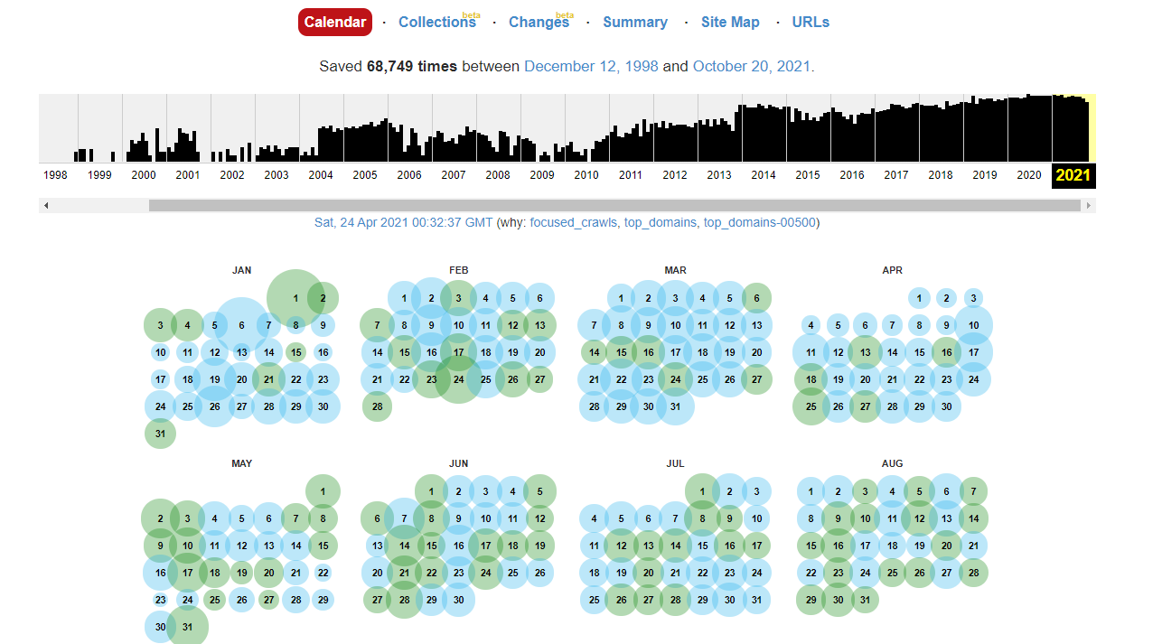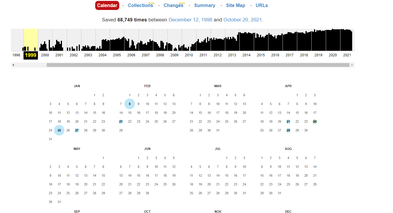 그러면 여태까지 해당 사이트가 만들어진 기간동안 아카이브 사이트에 저장된 문서들을 큰틀에서 파악 할 수가 있습니다.